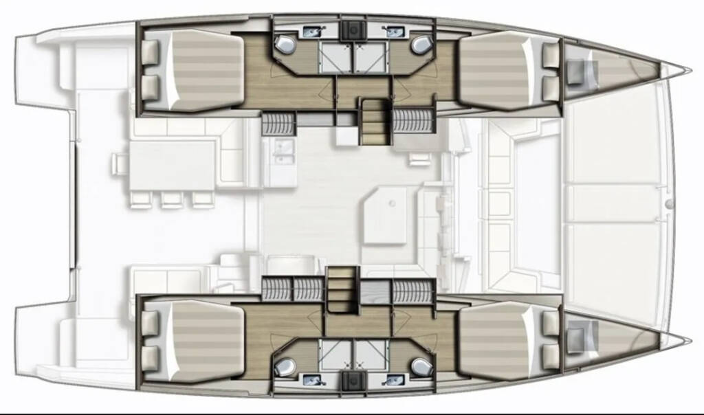 Catamaran Bali 4.1 Medusa I, built in 2020 is anchored in the Lefkas, Lygia Marina, Ionian Islands, Greece. It has 4 + 2 cabins, can accommodate 8 + 2 + 2 people and has 4 toilets. Bed linen and kitchen equipment are included in the price.