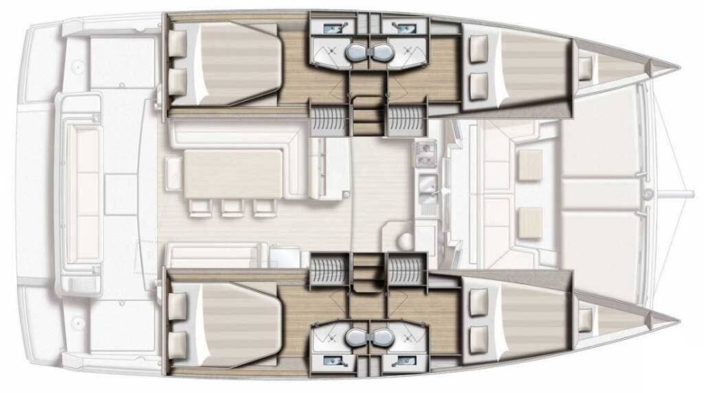 Catamaran Bali 4.1 Talitha, built in 2021 is anchored in the Palermo, Marina Si.Ti.mar, Sicily, Italy. It has 4 + 2 cabins, can accommodate 8 + 2 people and has 4 toilets. Bed linen and kitchen equipment are included in the price.