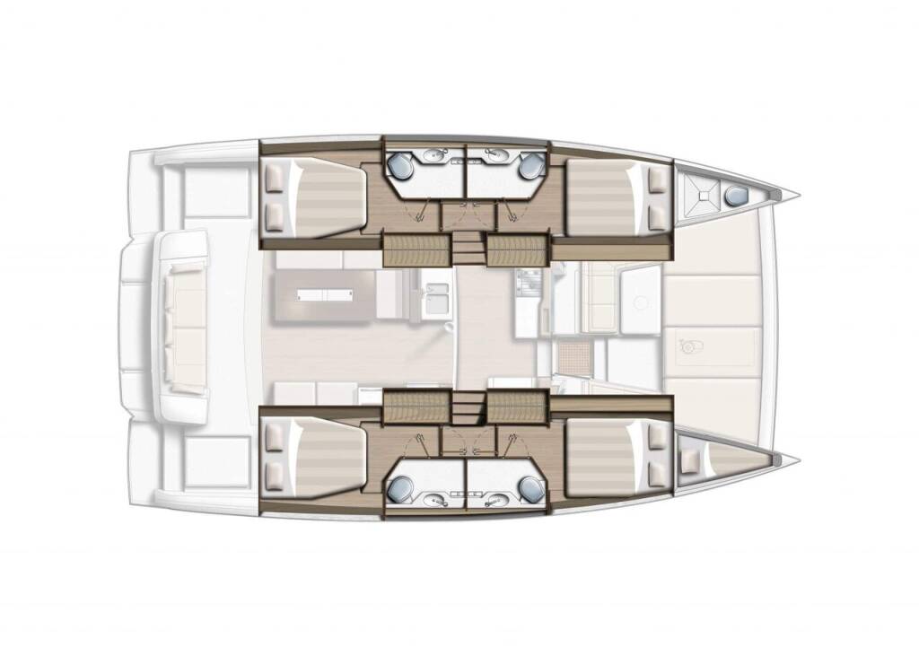 Catamaran Bali 4.2 Air Space, built in 2023 is anchored in the ACI Marina Vodice, Šibenik region, Croatia. It has 4 + 1 cabins, can accommodate 8 + 2 + 1 people and has 4 + 1 toilets. Bed linen and kitchen equipment are included in the price.