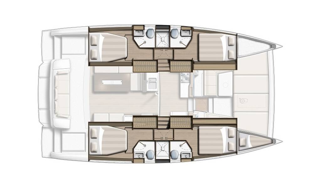 Catamaran Bali 4.2 Charmant, built in 2024 is anchored in the Marina Kornati, Biograd, Zadar region, Croatia. It has 4 + 1 cabins, can accommodate 8 + 2 + 1 people and has 4 toilets. Bed linen and kitchen equipment are included in the price.