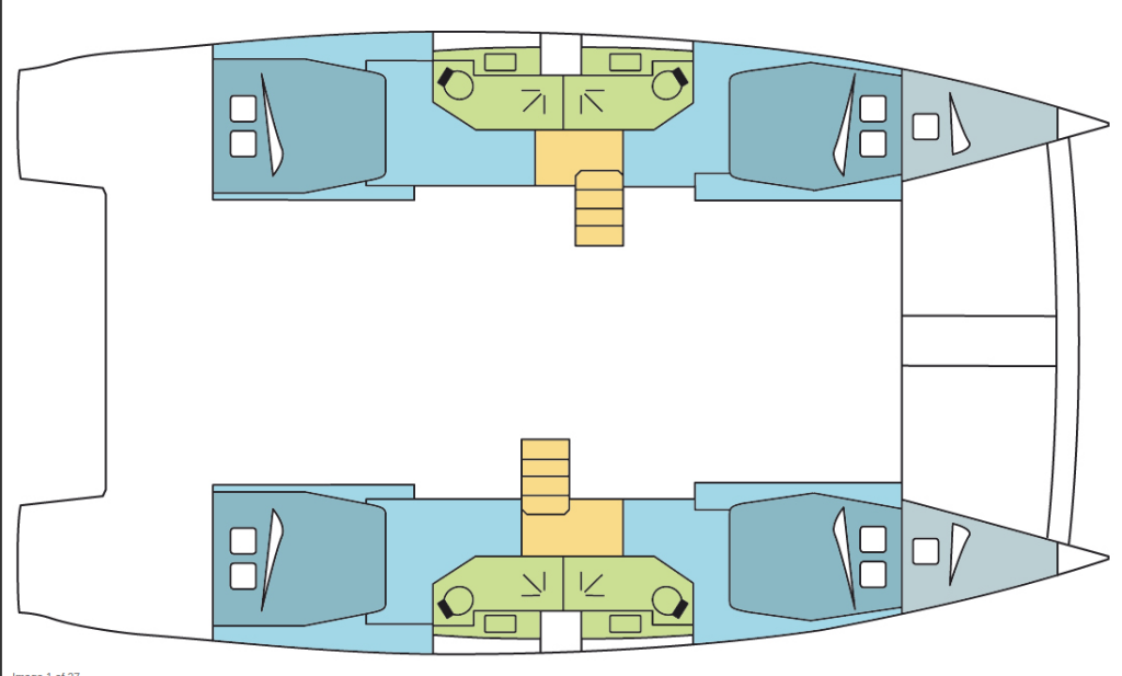 Catamaran Bali 4.5 Grande Amore, built in 2018 is anchored in the Marina Punat, Krk, Kvarner, Croatia. It has 4 + 2 cabins, can accommodate 8 + 1 + 2 people and has 4 toilets. Bed linen and kitchen equipment are included in the price.