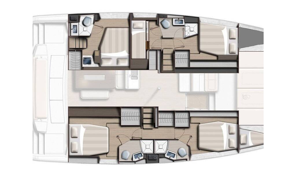 Catamaran Bali 4.6 Neda, built in 2024 is anchored in the Mykonos, Cyclades, Greece. It has 5 cabins, can accommodate 10 + 1 people and has 4 + 1 toilets. Bed linen and kitchen equipment are included in the price.