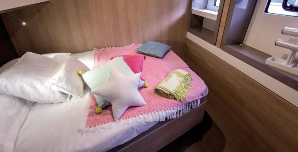 Catamaran Bali 5.4 ARAGORN_DB, built in 2020 is anchored in the Naples, Pozzuoli, Campania, Italy. It has 6 + 2 cabins, can accommodate 12 + 2 people and has 6 toilets. Bed linen and kitchen equipment are included in the price.