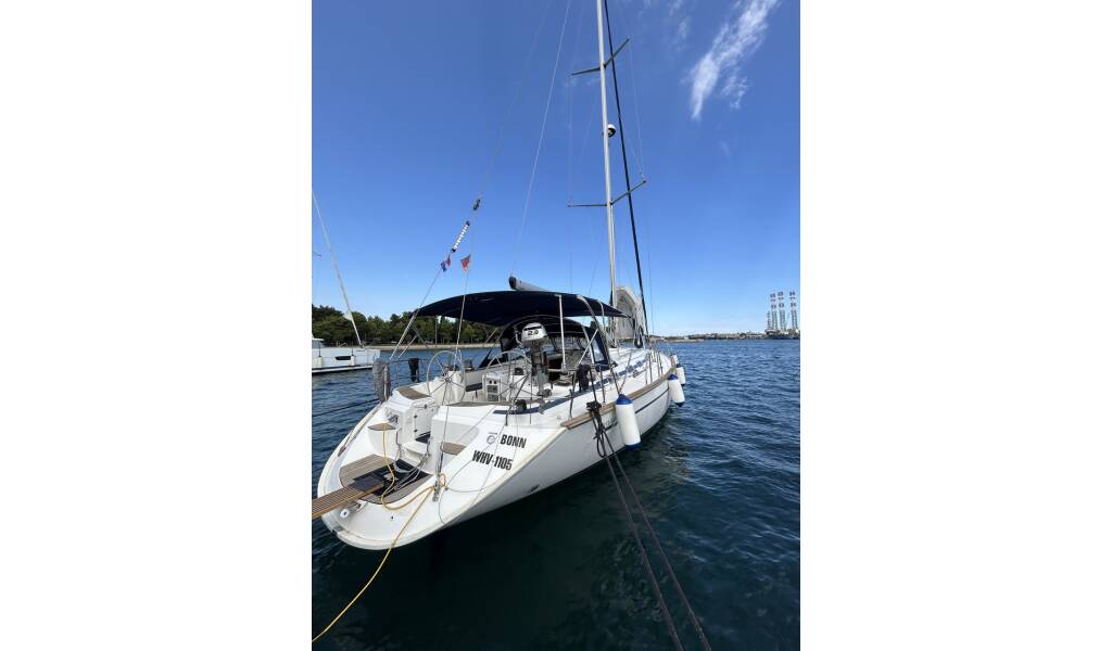 Sailing yacht Bavaria 49 Lady Liberty, built in 2024 is anchored in the Pula, Marina Polesana, Istra, Croatia. It has 5 cabins, can accommodate 10 people and has 3 toilets. Bed linen and kitchen equipment are included in the price.