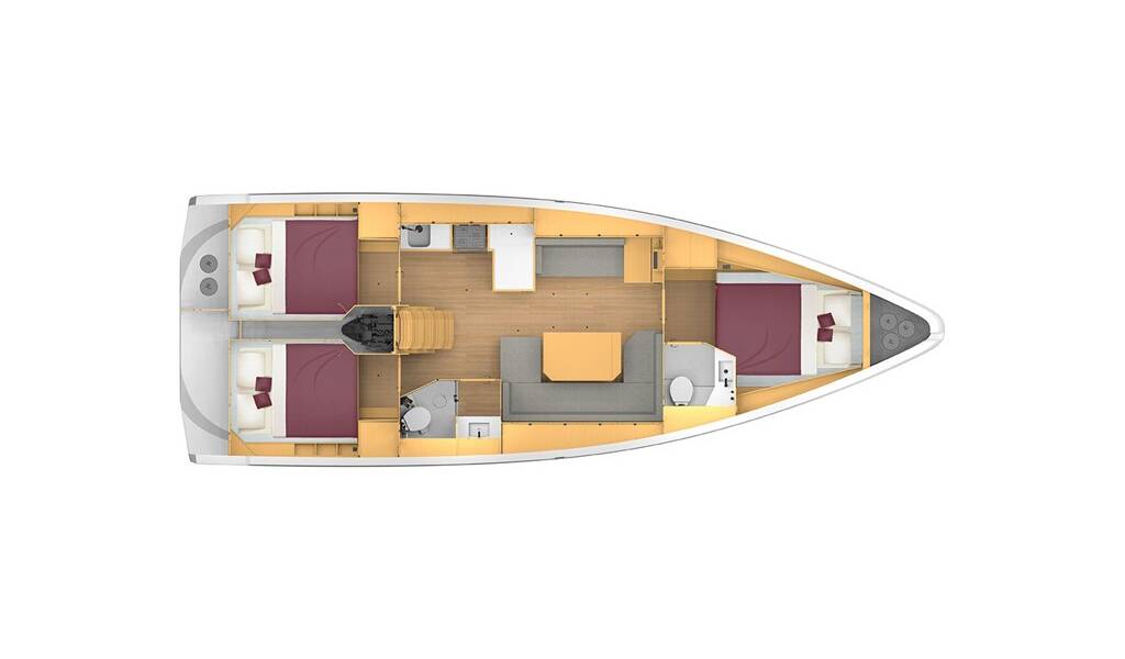 Sailing yacht Bavaria C42 Aruna, built in 2022 is anchored in the Fethiye, Yes Marina, Aegean, Turkey. It has 3 cabins, can accommodate 6 people and has 2 toilets. Bed linen and kitchen equipment are included in the price.