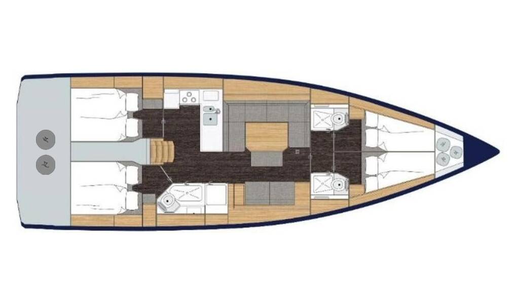 Sailing yacht Bavaria Cruiser 45 Nadine, built in 2018 is anchored in the Sukosan, D-Marin Dalmacija Marina, Zadar region, Croatia. It has 4 cabins, can accommodate 8 people and has 3 toilets. Bed linen and kitchen equipment are included in the price.