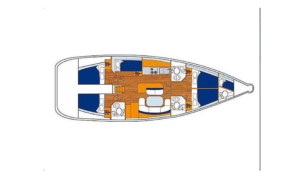 Sailing yacht Cyclades 50.5 Alegria, built in 2009 is anchored in the Athens, Attica, Nea Peramos Marina, Athens area/Saronic/Peloponese, Greece. It has 5 + 1 cabins, can accommodate 10 + 2 people and has 3 + 1 toilets. Bed linen and kitchen equipment are included in the price.