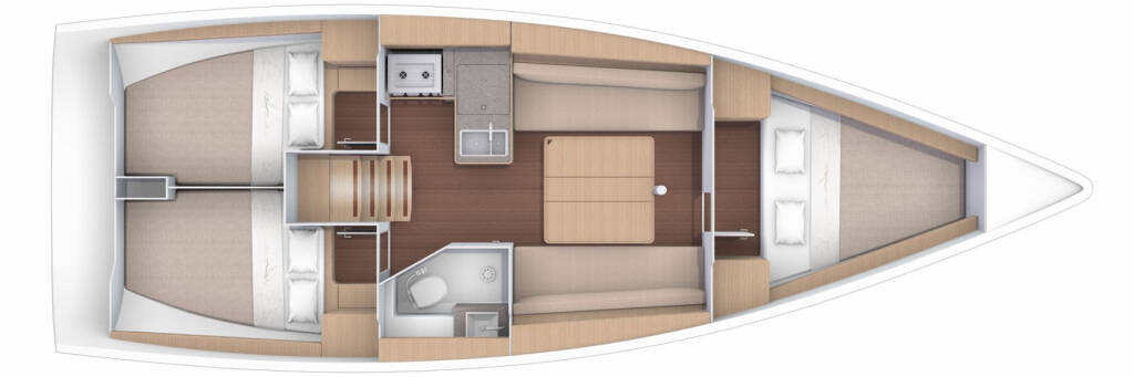 Sailing yacht Dufour 360 GL Vanila, built in 2019 is anchored in the Marina Losinj, Mali Losinj, Kvarner, Croatia. It has 3 cabins, can accommodate 6 + 2 people and has 1 toilets. Bed linen and kitchen equipment are included in the price.
