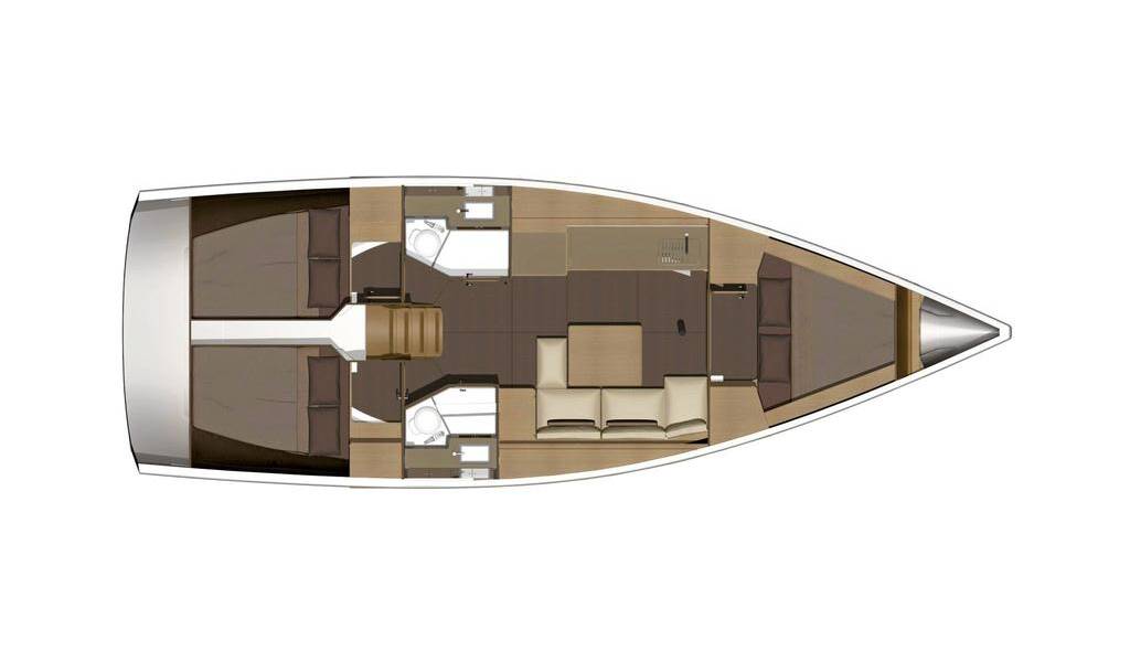 Sailing yacht Dufour 382 GL Niké, built in 2018 is anchored in the Pula, Marina Polesana, Istra, Croatia. It has 3 cabins, can accommodate 6 + 2 people and has 2 toilets. Bed linen and kitchen equipment are included in the price.