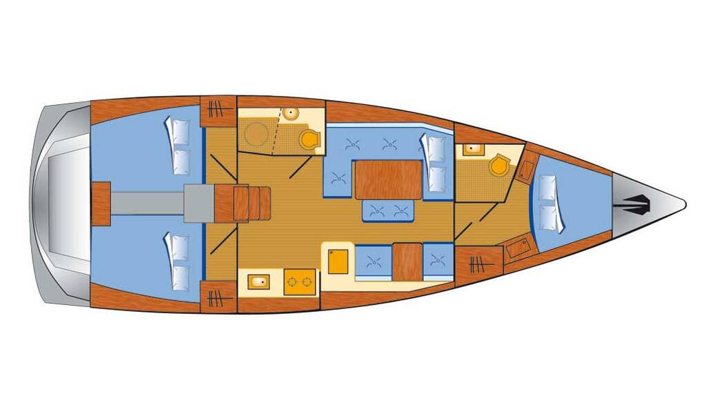 Sailing yacht Dufour 412 GL Stella, built in 2017 is anchored in the Marina Tehnomont Veruda, Pula, Istra, Croatia. It has 3 cabins, can accommodate 6 + 2 people and has 2 toilets. Bed linen and kitchen equipment are included in the price.