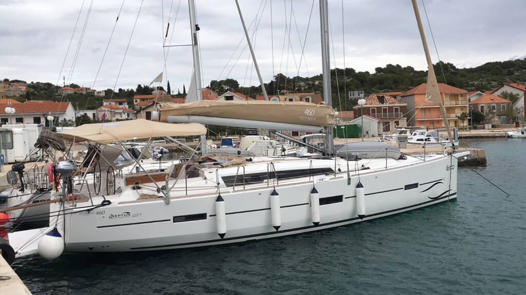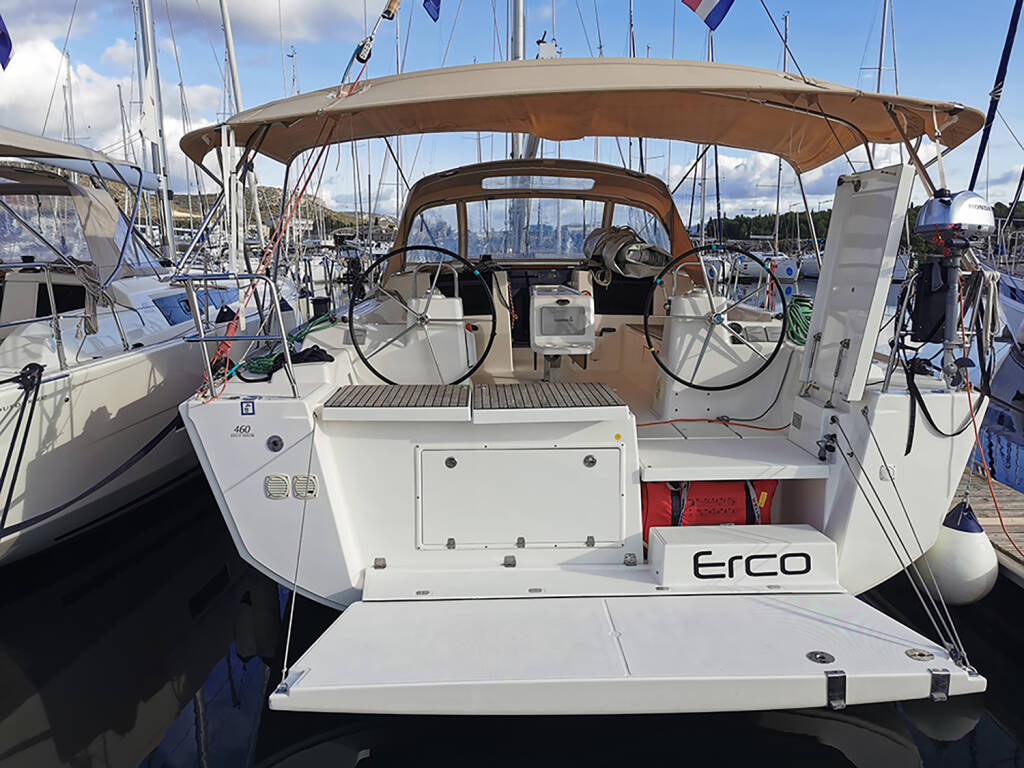 Sailing yacht Dufour 460 GL Erco, built in 2017 is anchored in the Marina Kornati, Biograd, Zadar region, Croatia. It has 4 cabins, can accommodate 8 + 2 people and has 4 toilets. Bed linen and kitchen equipment are included in the price.
