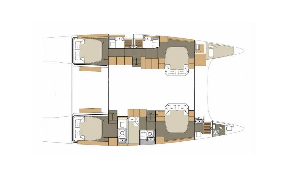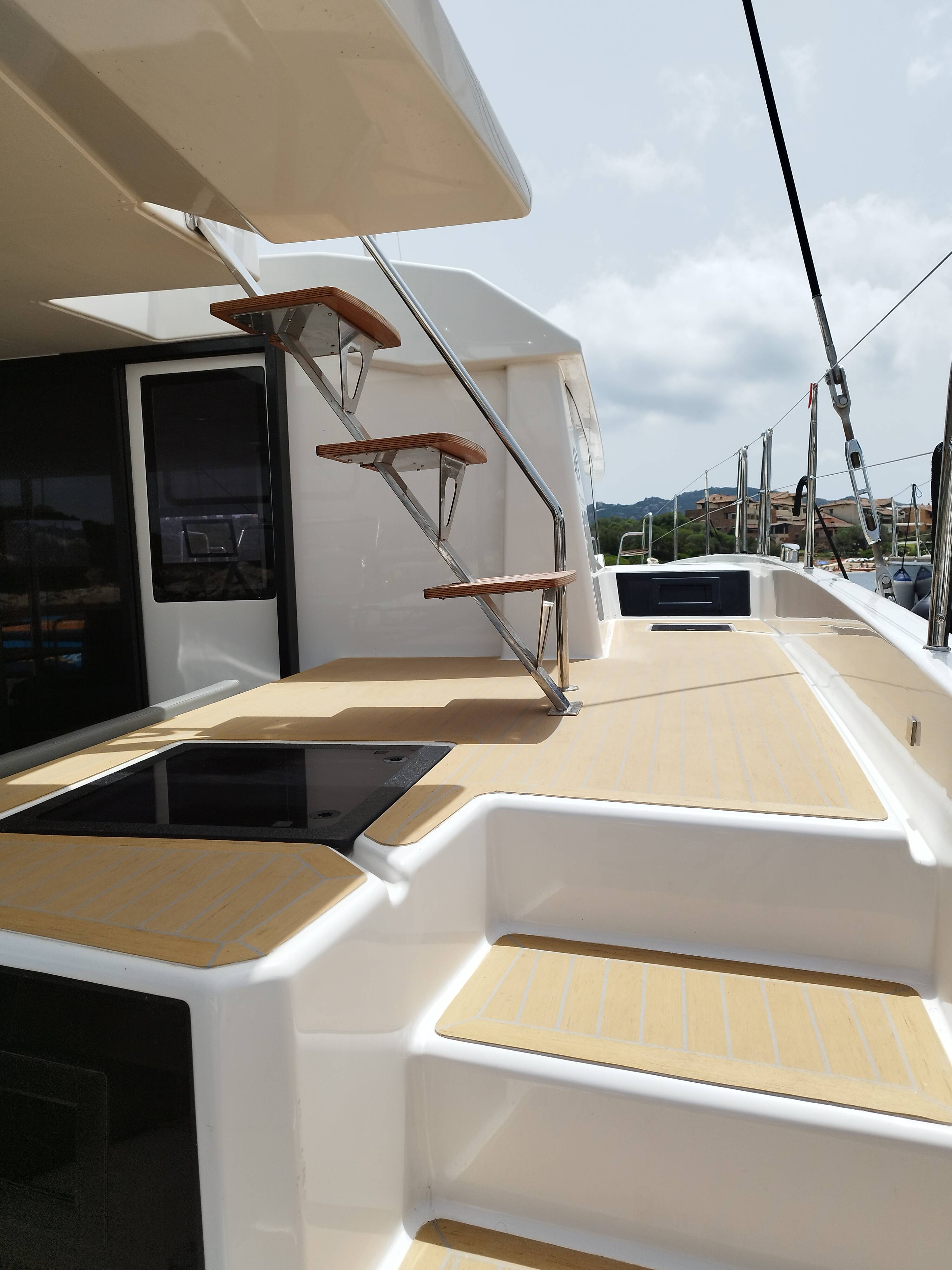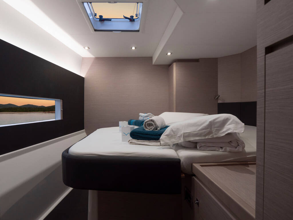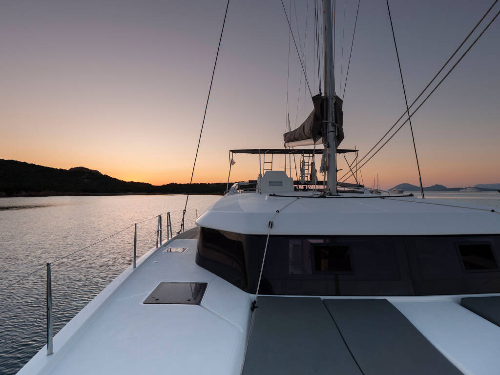 Catamaran Dufour 48 Catamaran Delphinus, built in 2023 is anchored in the Sardinia, Punta Nuraghe, Sardinia, Italy. It has 5 + 1 cabins, can accommodate 10 + 2 people and has 5 + 1 toilets. Bed linen and kitchen equipment are included in the price.