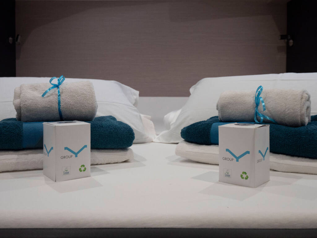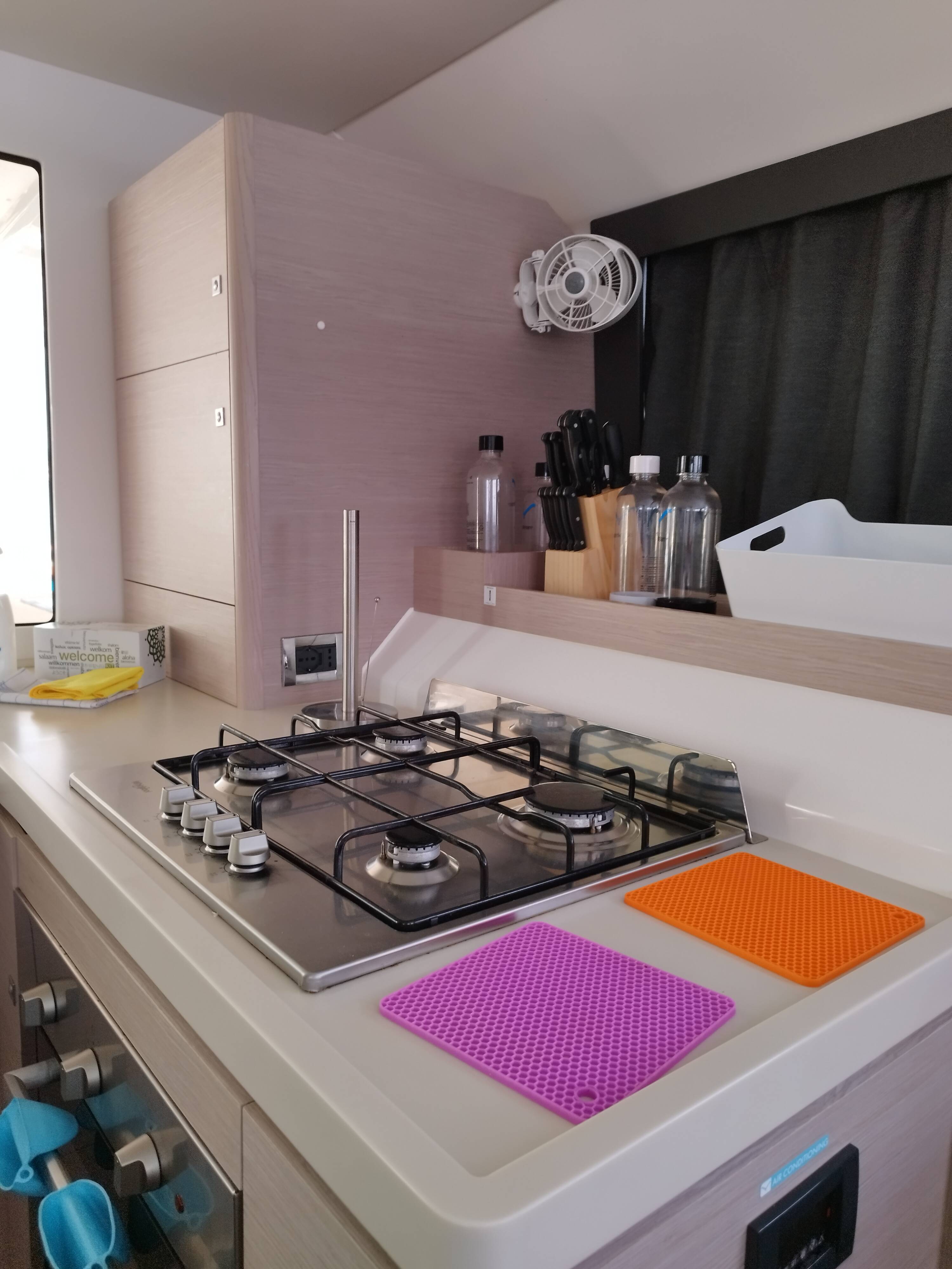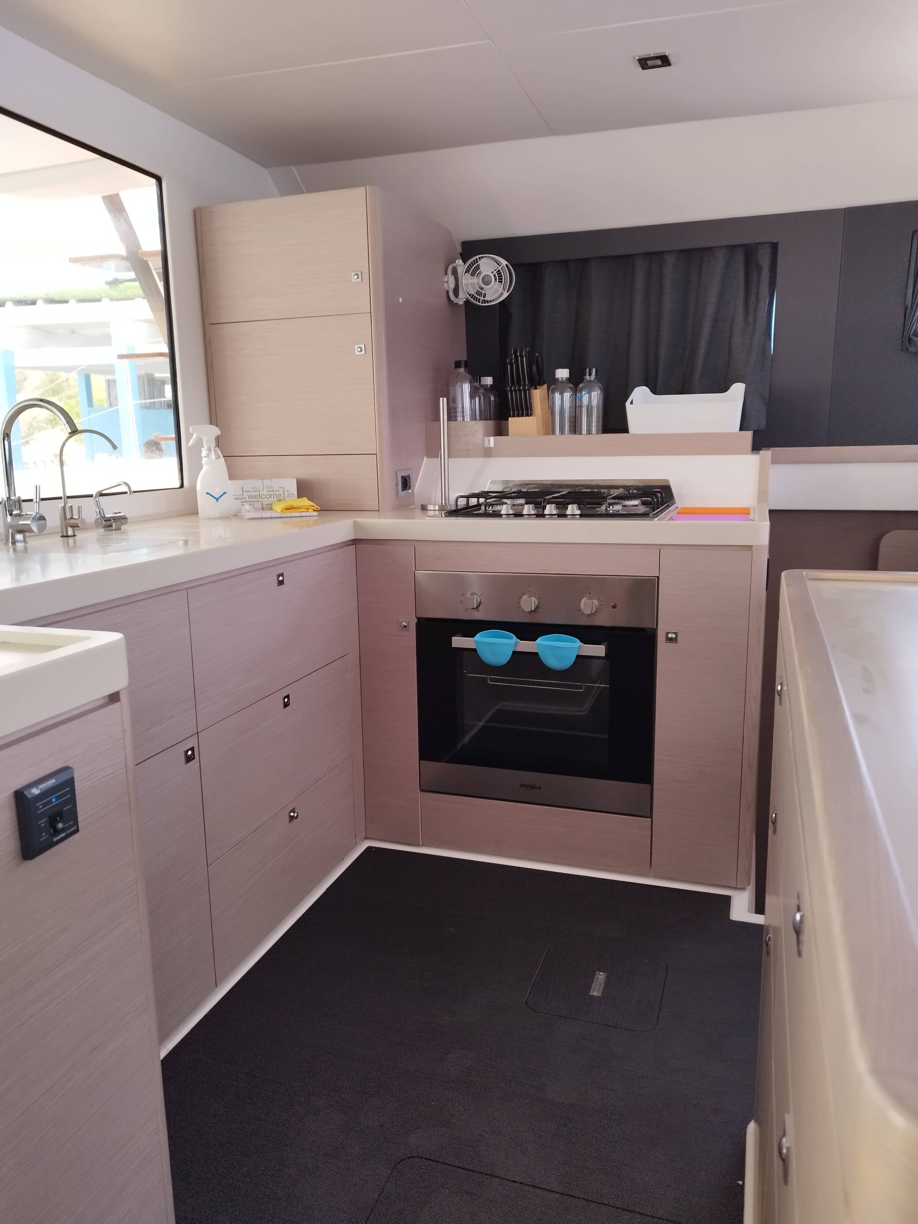 Catamaran Dufour 48 Catamaran Delphinus, built in 2023 is anchored in the Sardinia, Punta Nuraghe, Sardinia, Italy. It has 5 + 1 cabins, can accommodate 10 + 2 people and has 5 + 1 toilets. Bed linen and kitchen equipment are included in the price.