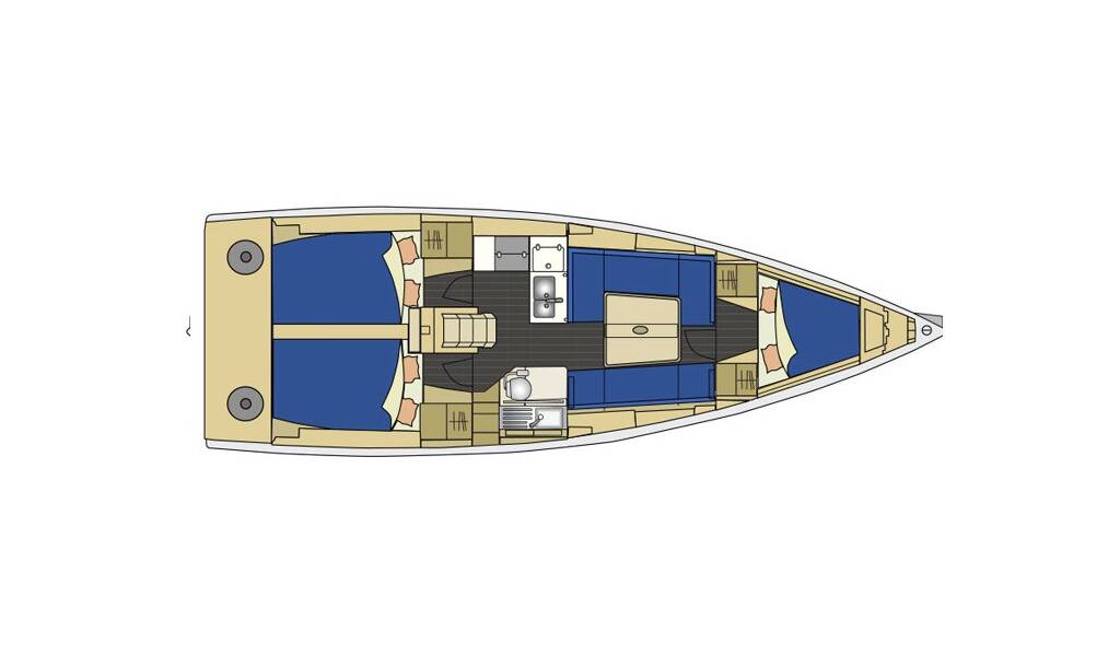 Sailing yacht Elan 350 Performance Quebec, built in 2012 is anchored in the Marina Kornati, Biograd, Zadar region, Croatia. It has 3 cabins, can accommodate 6 + 2 people and has 1 toilets. Bed linen and kitchen equipment are included in the price.