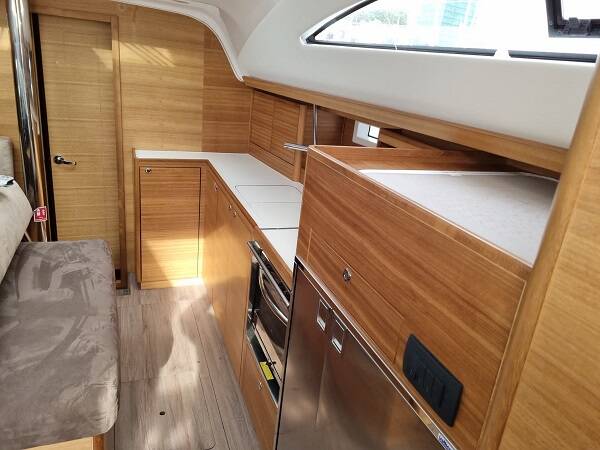 Sailing yacht Elan Impression 45.1 Albatros, built in 2021 is anchored in the ACI Marina Trogir, Split region, Croatia. It has 4 cabins, can accommodate 8 + 2 people and has 2 toilets. Bed linen and kitchen equipment are included in the price.