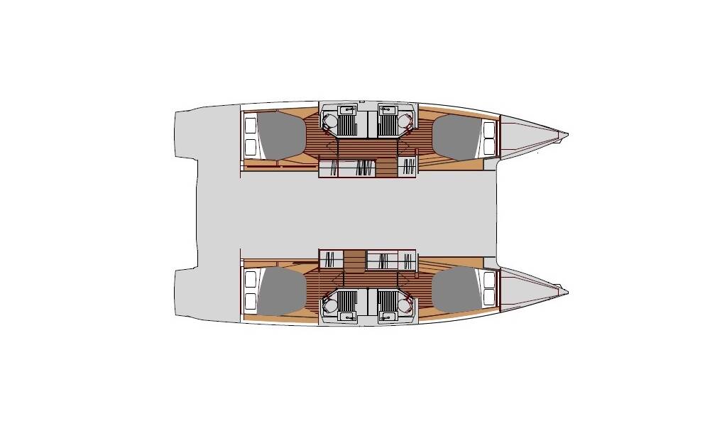 Catamaran Fountaine Pajot Astrea 42 Le Bart, built in 2022 is anchored in the Marina Zadar (ex. Tankerkomerc), Zadar region, Croatia. It has 4 + 2 cabins, can accommodate 8 + 2 + 2 people and has 4 toilets. Bed linen and kitchen equipment are included in the price.