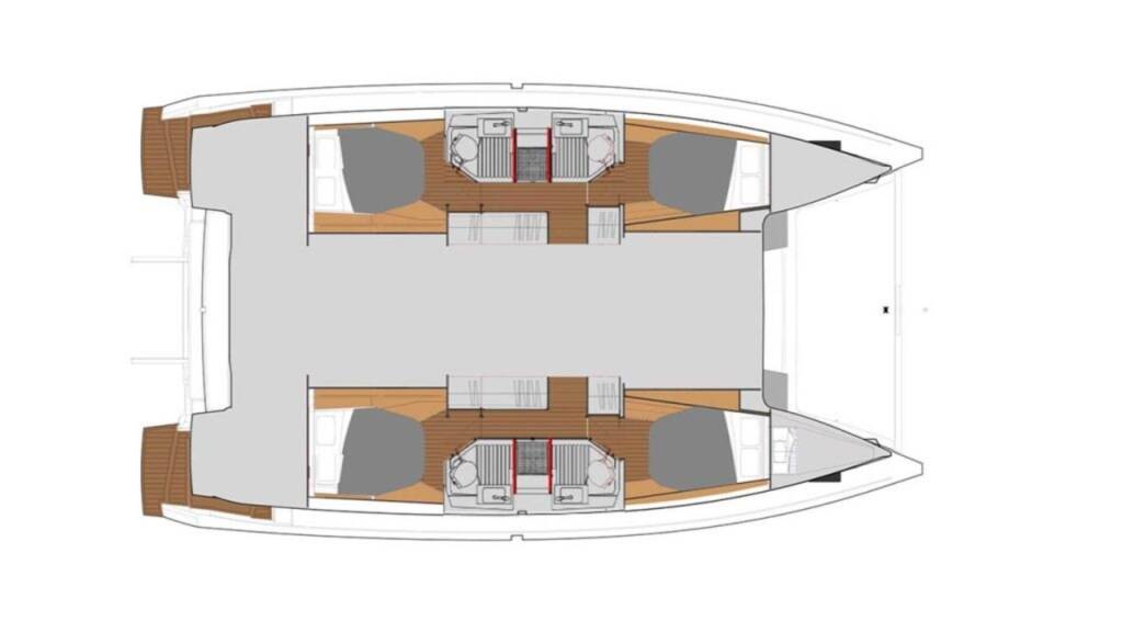 Catamaran Fountaine Pajot Astrea 42 Satellite, built in 2024 is anchored in the Kotor, Port of Kotor, Montenegro, Montenegro . It has 4 + 2 cabins, can accommodate 8 + 2 people and has 4 toilets. Bed linen and kitchen equipment are included in the price.