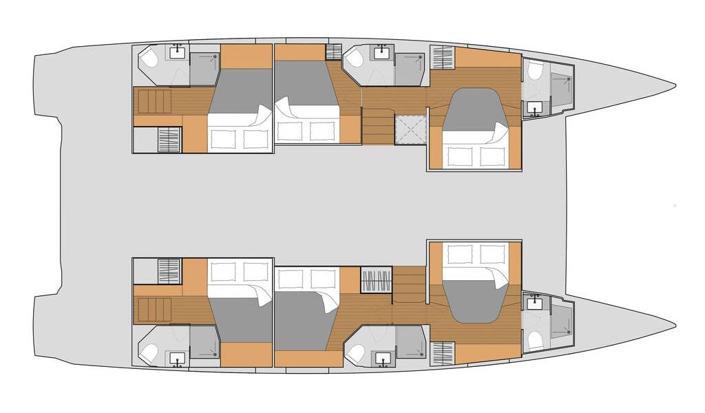 Catamaran Fountaine Pajot Aura 51 What's left, built in 2023 is anchored in the BVI, Tortola, Ritter House Marina, British Virgin Islands, British Virgin Islands. It has 6 cabins, can accommodate 12 people and has 6 toilets. Bed linen and kitchen equipment are included in the price.