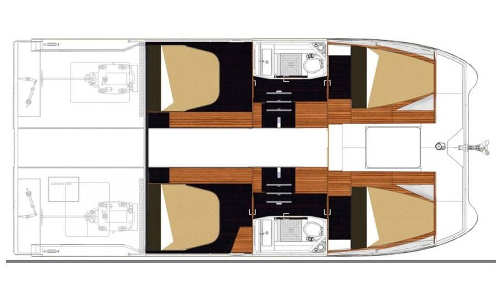 Power catamaran Fountaine Pajot MY 37 Anrik, built in 2020 is anchored in the Marina Kornati, Biograd, Zadar region, Croatia. It has 4 cabins, can accommodate 8 + 1 people and has 2 toilets. Bed linen and kitchen equipment are included in the price.
