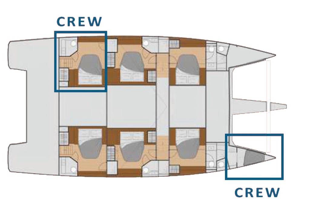 Catamaran Fountaine Pajot Samana 59 Maurice, built in 2023 is anchored in the Sardinia, Cannigione, Sardinia, Italy. It has 5 + 2 cabins, can accommodate 9 + 3 people and has 5 + 1 toilets. Bed linen and kitchen equipment are included in the price.