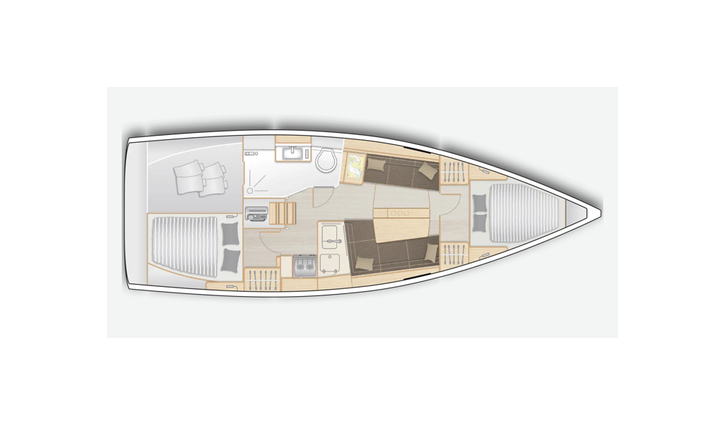 Sailing yacht Hanse 348 Bayolia, built in 2024 is anchored in the Cote D'Azur, Marseille Marina Vieux Port, Provence-Alpes-Côte d'Azur, France. It has 2 cabins, can accommodate 4 + 2 people and has 1 toilets. Bed linen and kitchen equipment are included in the price.