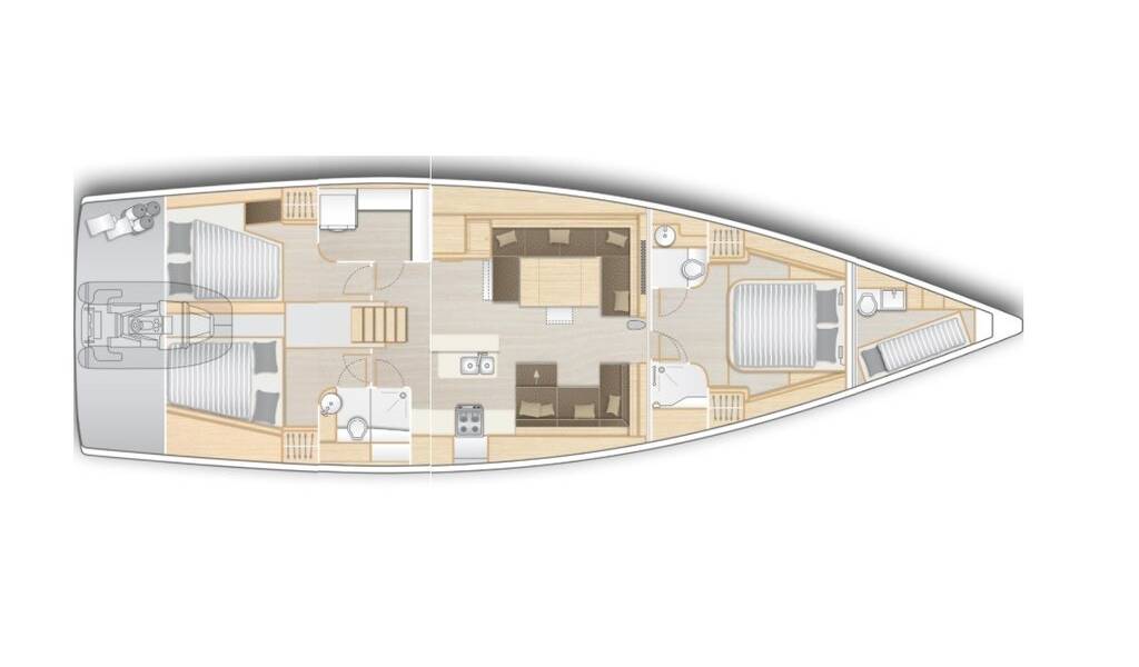 Sailing yacht Hanse 588 Amadea, built in 2020 is anchored in the Kos, Kos Marina, Dodecanese, Greece. It has 3 + 1 cabins, can accommodate 6 + 2 + 1 people and has 3 + 1 toilets. Bed linen and kitchen equipment are included in the price.