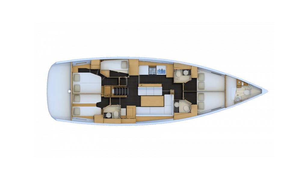 Sailing yacht Jeanneau 54 Mary-Lu, built in 2019 is anchored in the Trogir, Marina Trogir (ex.SCT), Split region, Croatia. It has 5 + 1 cabins, can accommodate 10 + 2 + 1 people and has 3 + 1 toilets. Bed linen and kitchen equipment are included in the price.