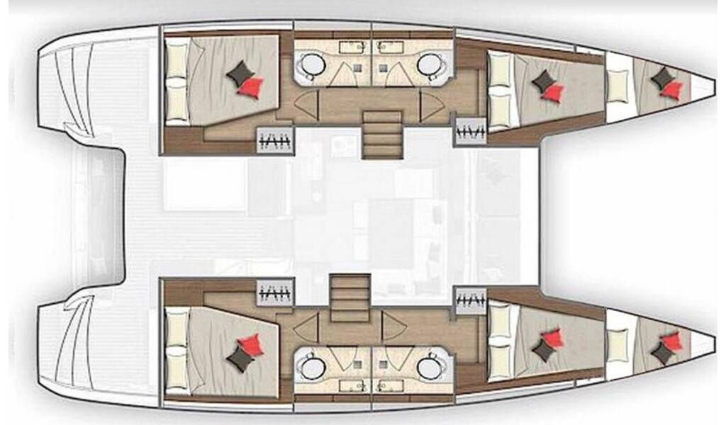 Catamaran Lagoon 40 Fratelli, built in 2022 is anchored in the Volos, Skiathos/Sporades, Volos, Greece. It has 4 + 2 cabins, can accommodate 10 + 2 people and has 4 toilets. Bed linen and kitchen equipment are included in the price.