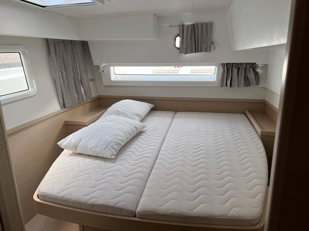 Catamaran Lagoon 42 Sissi, built in 2023 is anchored in the Capo D'orlando Marina, Sicily, Italy. It has 4 + 2 cabins, can accommodate 8 + 2 + 2 people and has 4 toilets. Bed linen and kitchen equipment are included in the price.