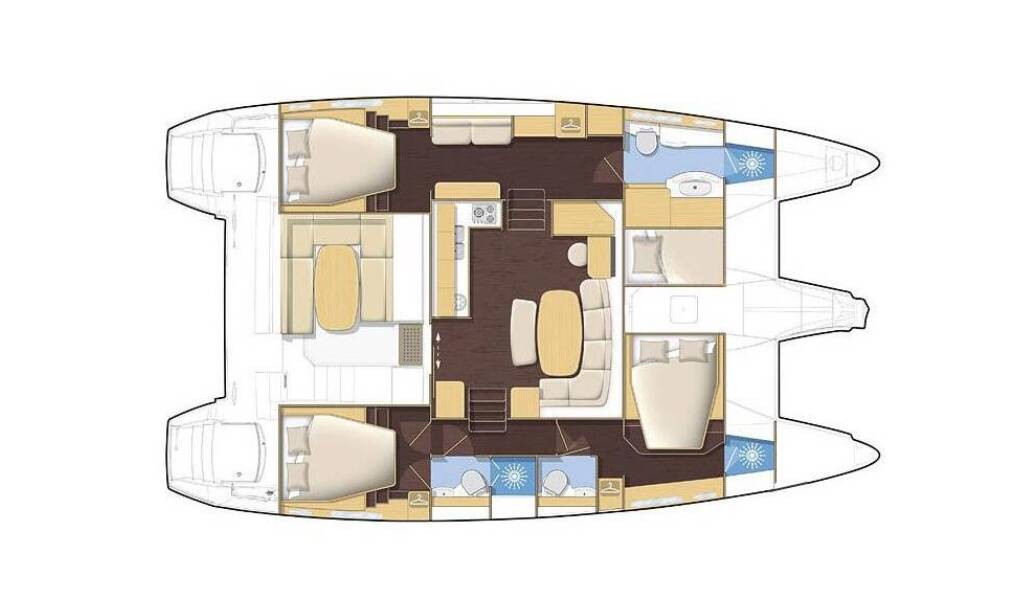 Catamaran Lagoon 421 Happiness, built in 2016 is anchored in the Marina Frapa, Rogoznica, Šibenik region, Croatia. It has 3 + 1 cabins, can accommodate 6 + 2 + 1 people and has 3 toilets. Bed linen and kitchen equipment are included in the price.
