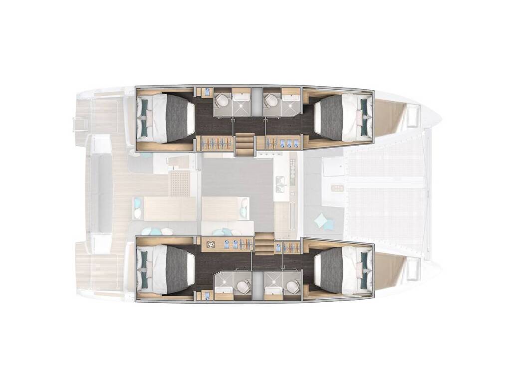 Catamaran Lagoon 43 Andorinha, built in 2026 is anchored in the Marina Frapa, Rogoznica, Šibenik region, Croatia. It has 4 + 2 cabins, can accommodate 8 + 1 + 2 people and has 4 toilets. Bed linen and kitchen equipment are included in the price.