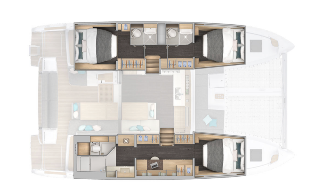 Catamaran Lagoon 43 Mali Niko, built in 2026 is anchored in the Sukosan, D-Marin Dalmacija Marina, Zadar region, Croatia. It has 3 + 1 cabins, can accommodate 6 + 1 people and has 3 toilets. Bed linen and kitchen equipment are included in the price.