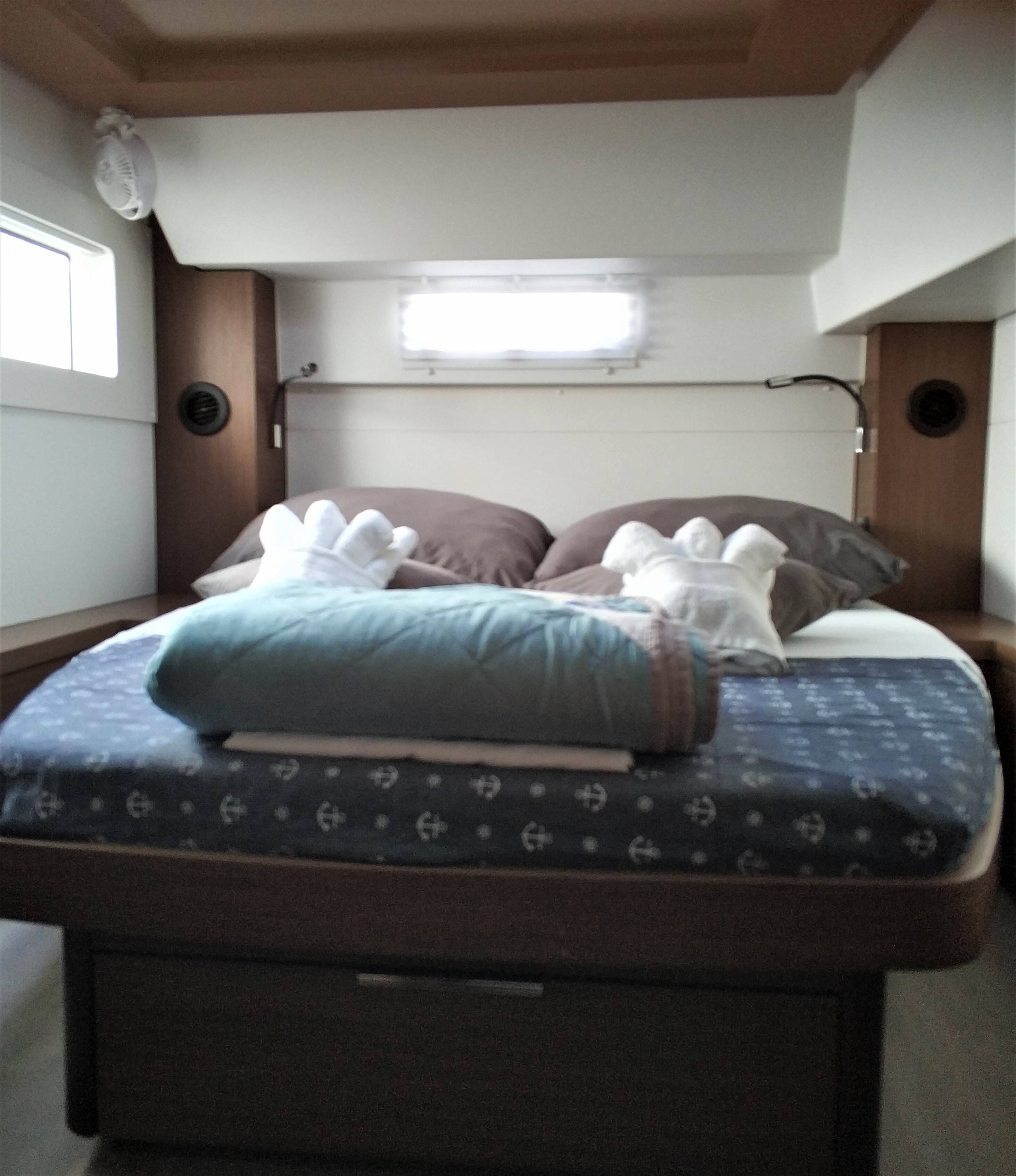 Catamaran Lagoon 46 Dionike, built in 2022 is anchored in the Lavrion - Olympic Marine, Athens area/Saronic/Peloponese, Greece. It has 4 + 1 cabins, can accommodate 8 + 1 + 1 people and has 4 + 1 toilets. Bed linen and kitchen equipment are included in the price.