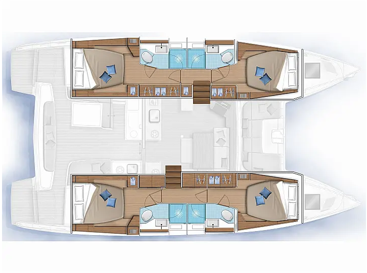 Catamaran Lagoon 46 G. P, built in 2020 is anchored in the Athens, Alimos marina, Athens area/Saronic/Peloponese, Greece. It has 4 + 2 cabins, can accommodate 8 + 2 people and has 4 + 1 toilets. Bed linen and kitchen equipment are included in the price.