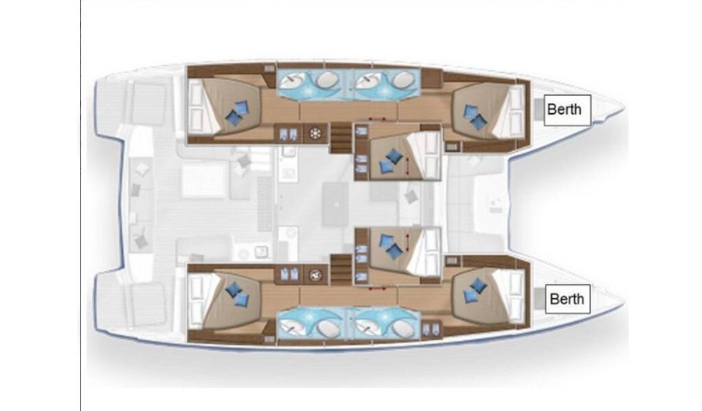 Catamaran Lagoon 50 Sunshine, built in 2022 is anchored in the Trogir, Marina Trogir (ex.SCT), Split region, Croatia. It has 6 + 2 cabins, can accommodate 12 + 2 people and has 4 toilets. Bed linen and kitchen equipment are included in the price.
