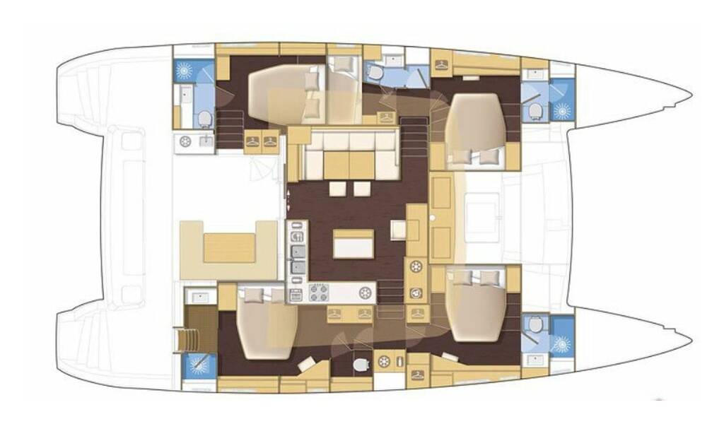 Catamaran Lagoon 560 Cool Change, built in 2015 is anchored in the Marina, Marina Agana (near Trogir), Split region, Croatia. It has 4 cabins, can accommodate 8 people and has 5 toilets. Bed linen and kitchen equipment are included in the price.