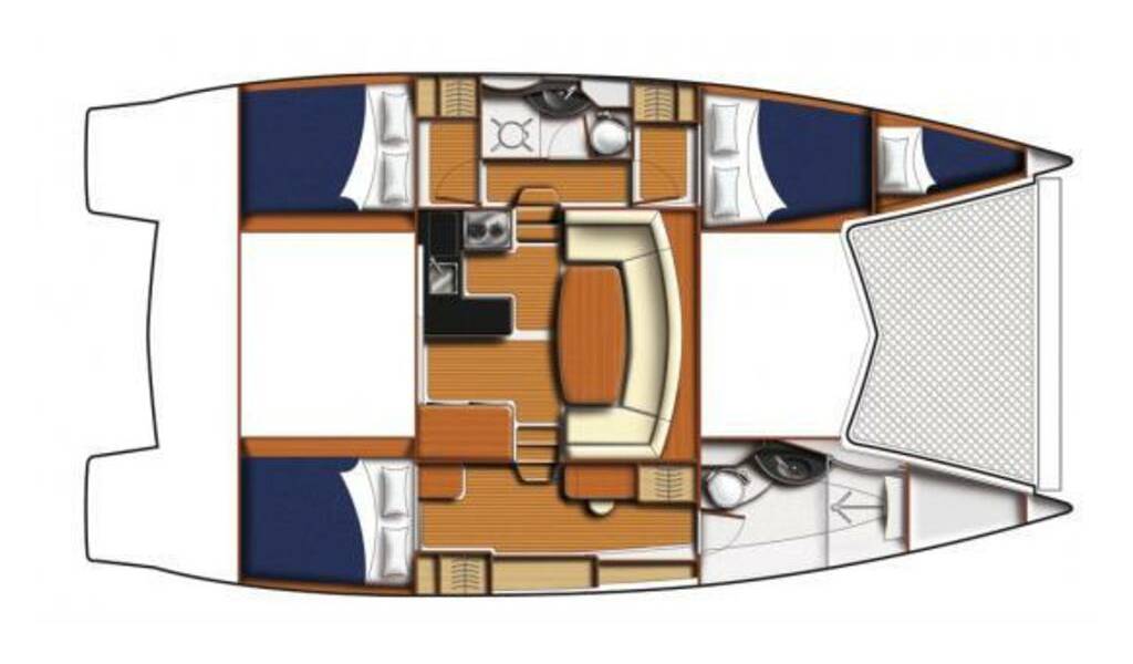Power catamaran Leopard 39 PC Musto, built in 2014 is anchored in the Budva, Montenegro, Montenegro . It has 3 cabins, can accommodate 6 + 2 people and has 2 toilets. Bed linen and kitchen equipment are included in the price.