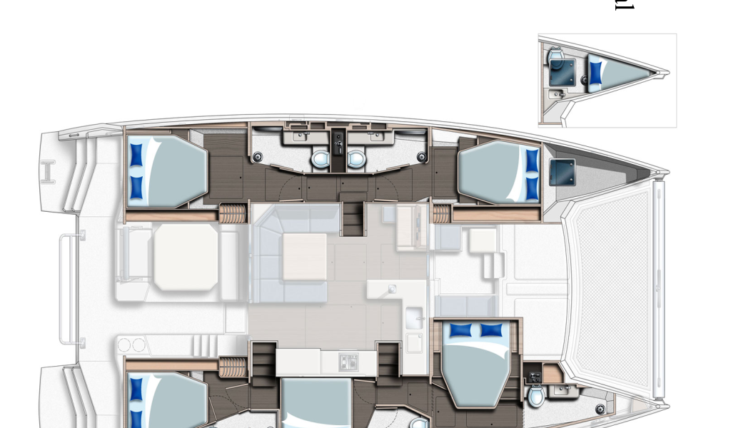 Catamaran Leopard 50 Edoardo, built in 2023 is anchored in the Sardinia, Cannigione, Sardinia, Italy. It has 5 + 1 cabins, can accommodate 10 + 2 people and has 5 toilets. Bed linen and kitchen equipment are included in the price.