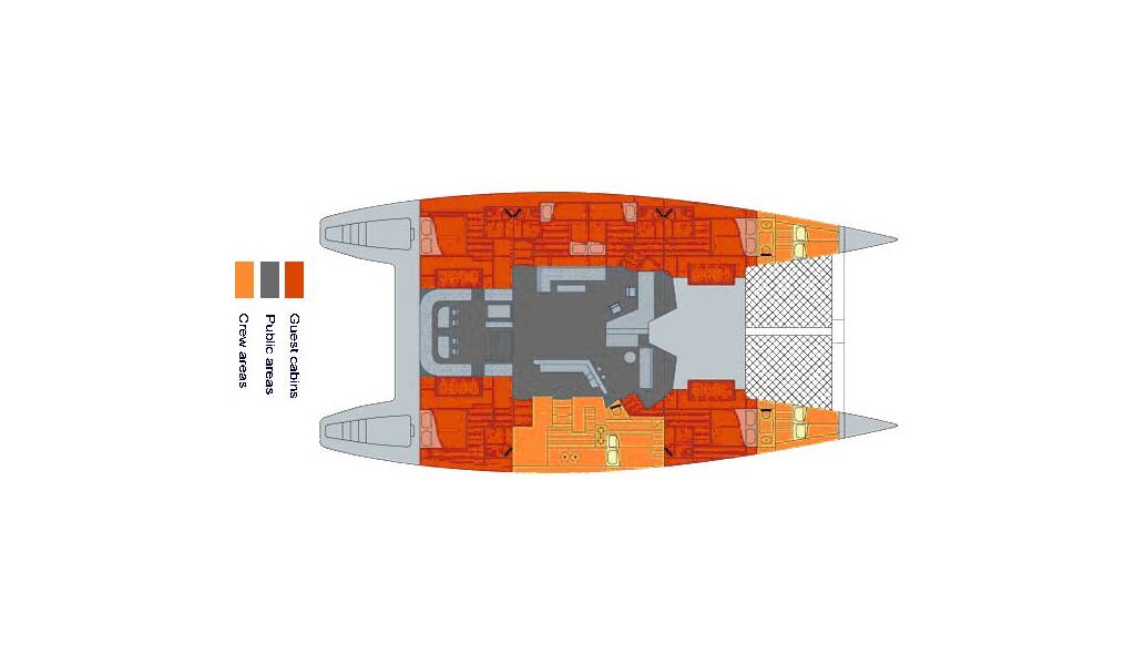 Catamaran Lonestar Lonestar, built in 2020 is anchored in the Seychelles, Eden Island Marina, Mahé, Seychelles. It has 6 + 2 cabins, can accommodate 12 + 2 + 2 people and has 6 toilets. Bed linen and kitchen equipment are included in the price.