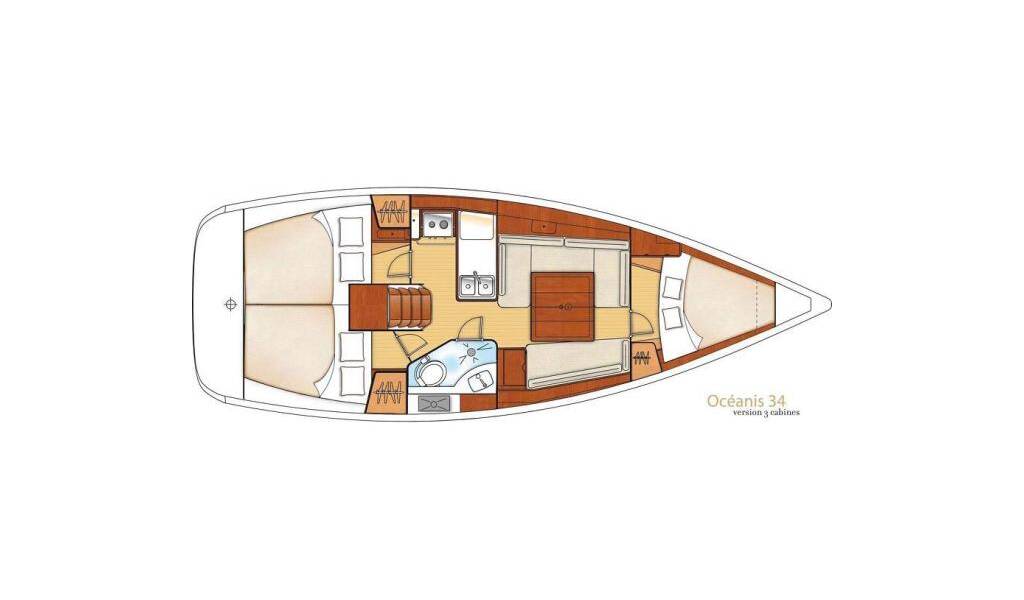 Sailing yacht Oceanis 34 Smyrna, built in 2010 is anchored in the Marmaris, Netsel Marina, Aegean, Turkey. It has 3 cabins, can accommodate 6 people and has 1 toilets. Bed linen and kitchen equipment are included in the price.