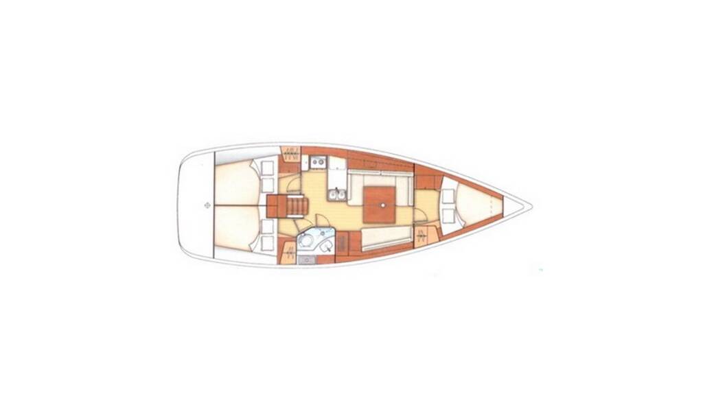 Sailing yacht Oceanis 37 Ioanna, built in 2011 is anchored in the Lefkas, D-Marin, Ionian Islands, Greece. It has 3 cabins, can accommodate 6 + 2 people and has 1 toilets. Bed linen and kitchen equipment are included in the price.