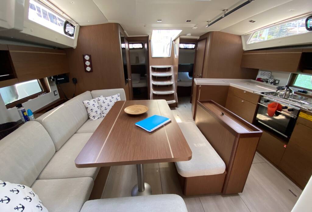 Sailing yacht Oceanis 46.1 Athena 5, built in 2023 is anchored in the Göcek Mucev Marina, Aegean, Turkey. It has 5 cabins, can accommodate 10 people and has 3 toilets. Bed linen and kitchen equipment are included in the price.