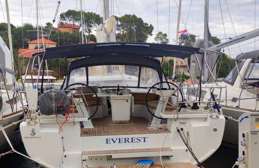 Sailing yacht Oceanis 46.1 Everest, built in 2021 is anchored in the Rogač (Šolta), Split region, Croatia. It has 5 cabins, can accommodate 10 people and has 3 toilets. Bed linen and kitchen equipment are included in the price.