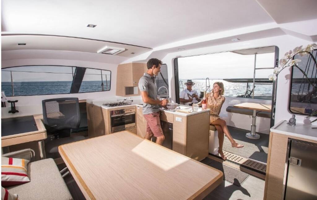 Catamaran Outremer 4X Give Me Five, built in 2024 is anchored in the Port Camargue, Occitanie, France. It has 3 cabins, can accommodate 6 people and has 2 toilets. Bed linen and kitchen equipment are included in the price.