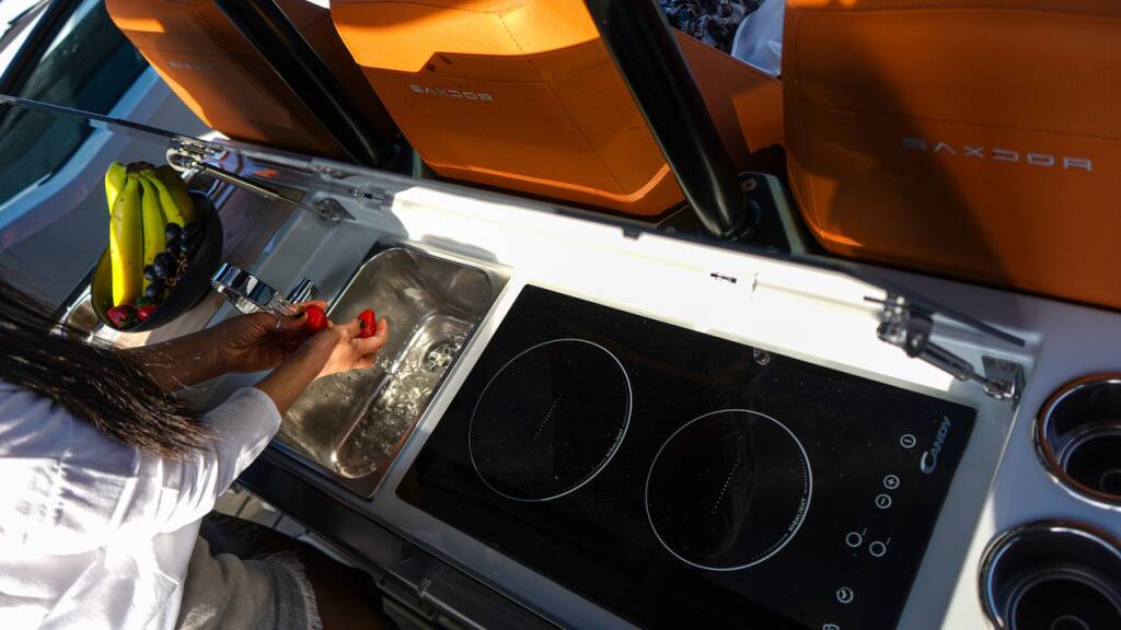 Motor boat Saxdor 320 GTO Wasp, built in 2023 is anchored in the Paros, Aliki, Cyclades, Greece. It has 1 cabins, can accommodate 2 people and has 1 toilets. Bed linen and kitchen equipment are included in the price.