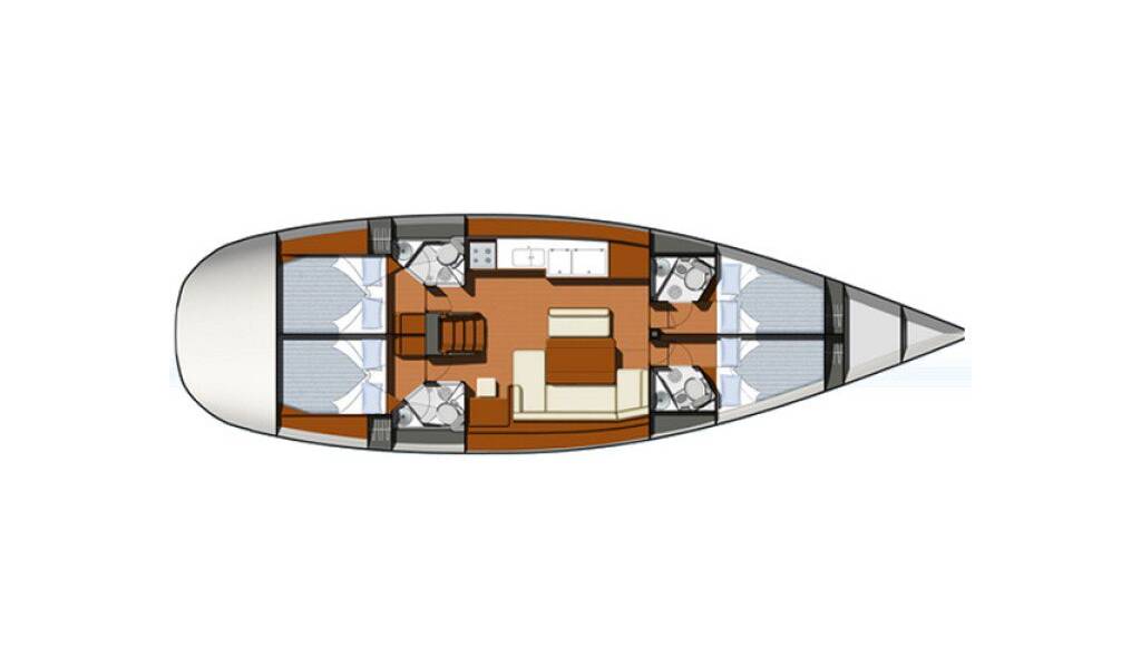 Sailing yacht Sun Odyssey 49i Mirta, built in 2009 is anchored in the Port of Avdira, East Macedonia and Thrace, Greece. It has 4 cabins, can accommodate 8 people and has 4 toilets. Bed linen and kitchen equipment are included in the price.