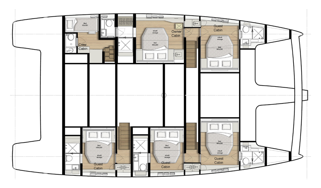 Catamaran Sunreef 60 E E-Motion, built in 2025 is anchored in the Phuket, Royal Phuket Marina, Phuket, Thailand . It has 4 cabins, can accommodate 8 people and has 4 toilets. Bed linen and kitchen equipment are included in the price.